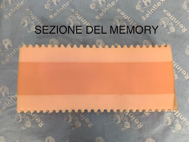 Il materasso in Memory di nostra produzione è un Sandwich composto da 3 strati: Memory da entrambi i lati con spessore di cm. 6 e una densità 55 kg/mc,