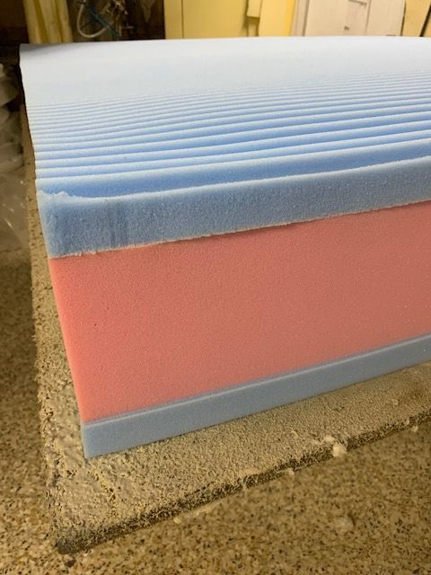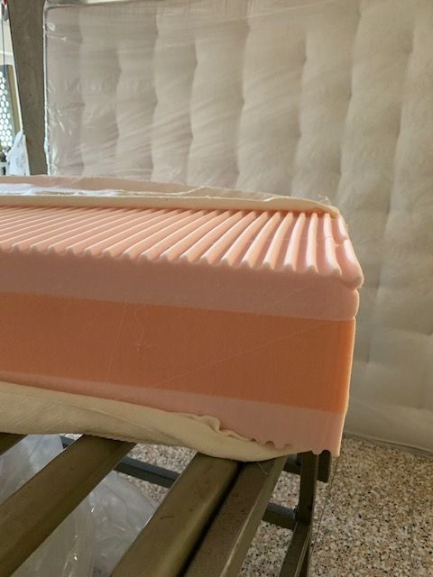 al centro un poliuretano espanso di cm. 8 con densità 40 kg/mc che in base alla portanza determina la rigidezza del materasso.